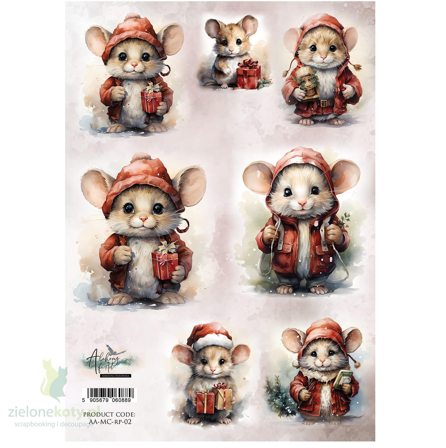 Papier ryżowy Alchemy Of Art A4 Merry Christmas święta myszki