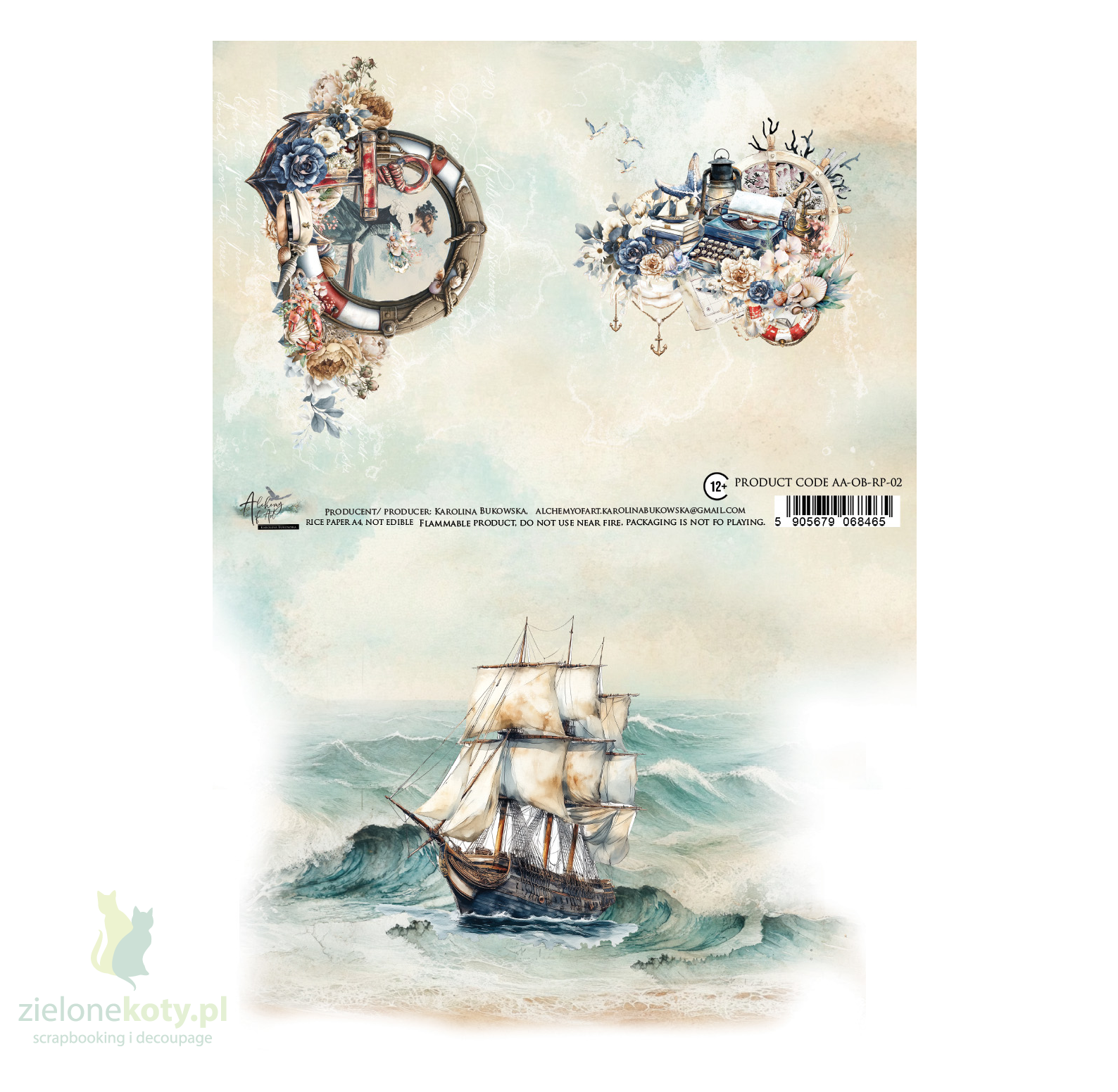 Papier ryżowy Alchemy Of Art A4 Ocean Blue żaglowiec