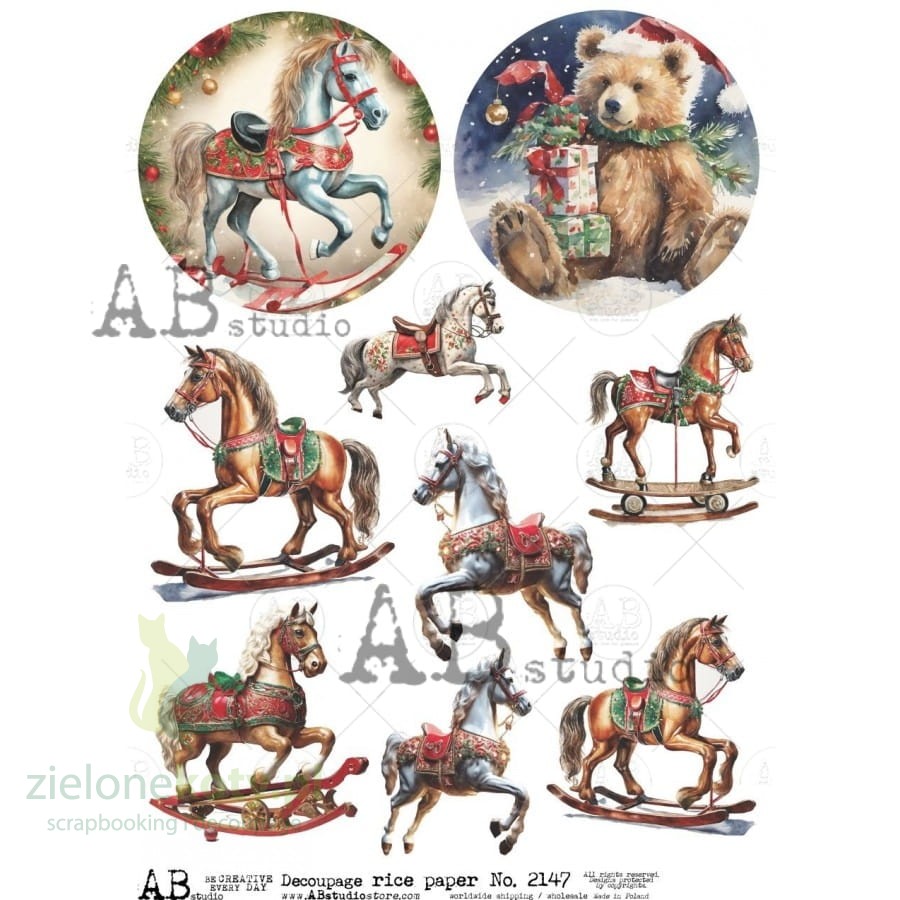 Papier ryżowy decoupage AB Studio A4 koniki