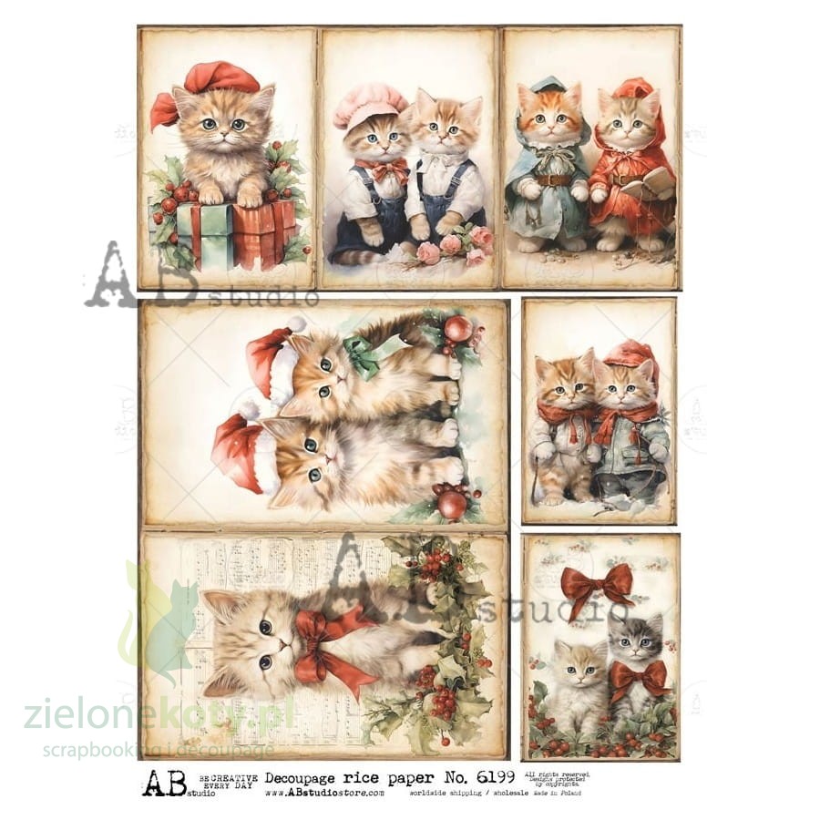Papier ryżowy decoupage AB Studio A4 kotki świąteczne obrazki