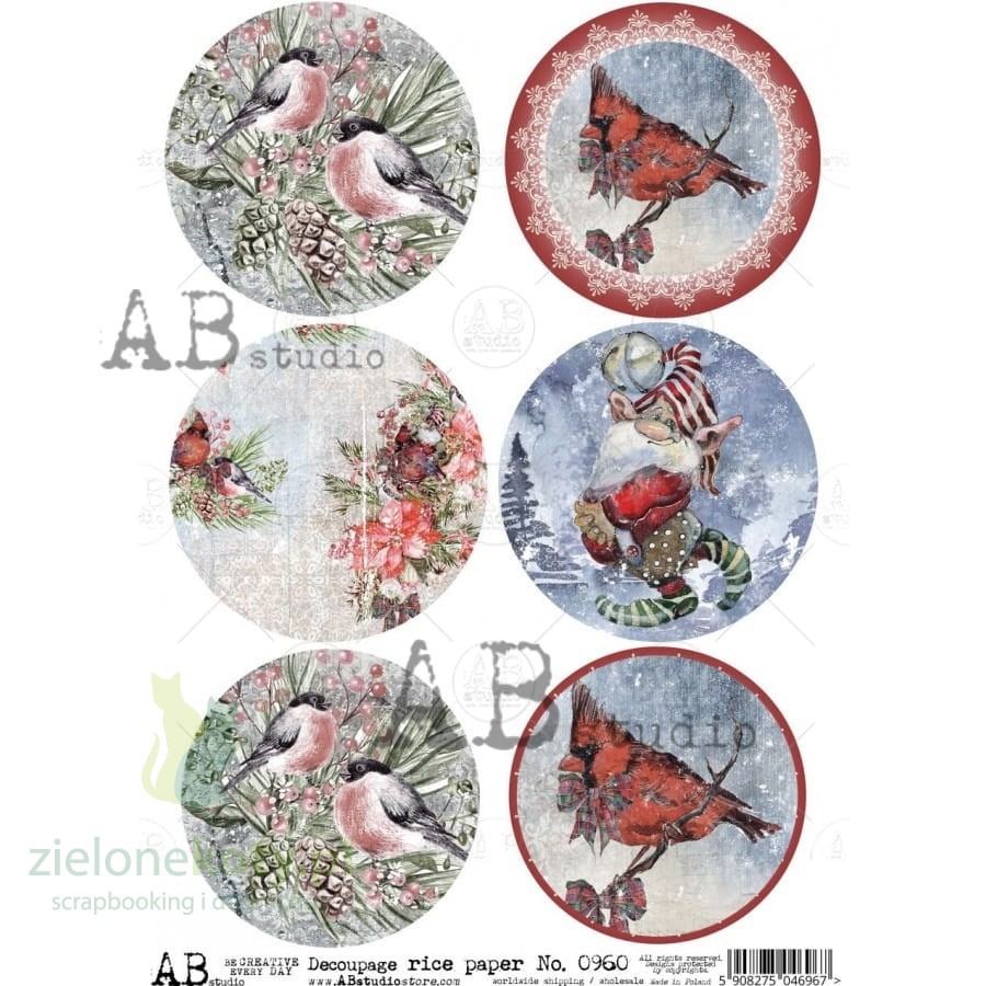 Papier ryżowy decoupage AB Studio A4 medaliony ptaki