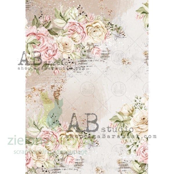 Papier ryżowy decoupage AB Studio A4 róże brązowe tło