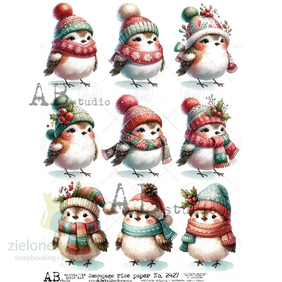 Papier ryżowy decoupage AB Studio A4 święta ptaszki