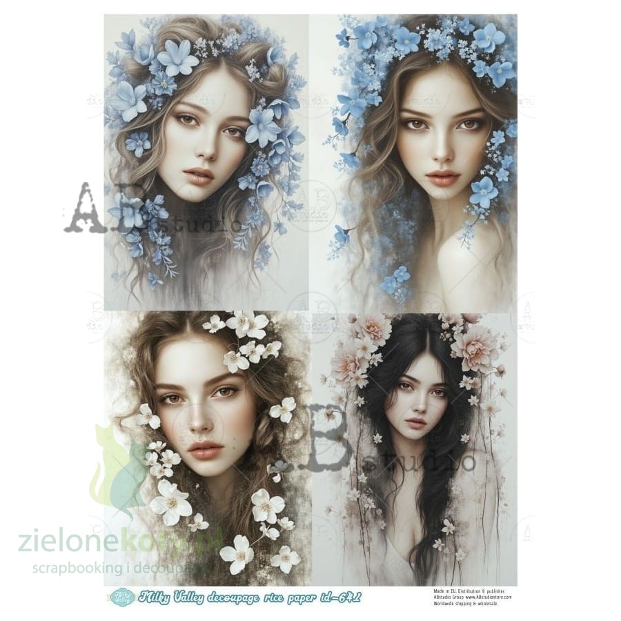 Papier ryżowy A4 do decoupage AB Studio z wizerunkami kobiet w delikatnym, romantycznym stylu