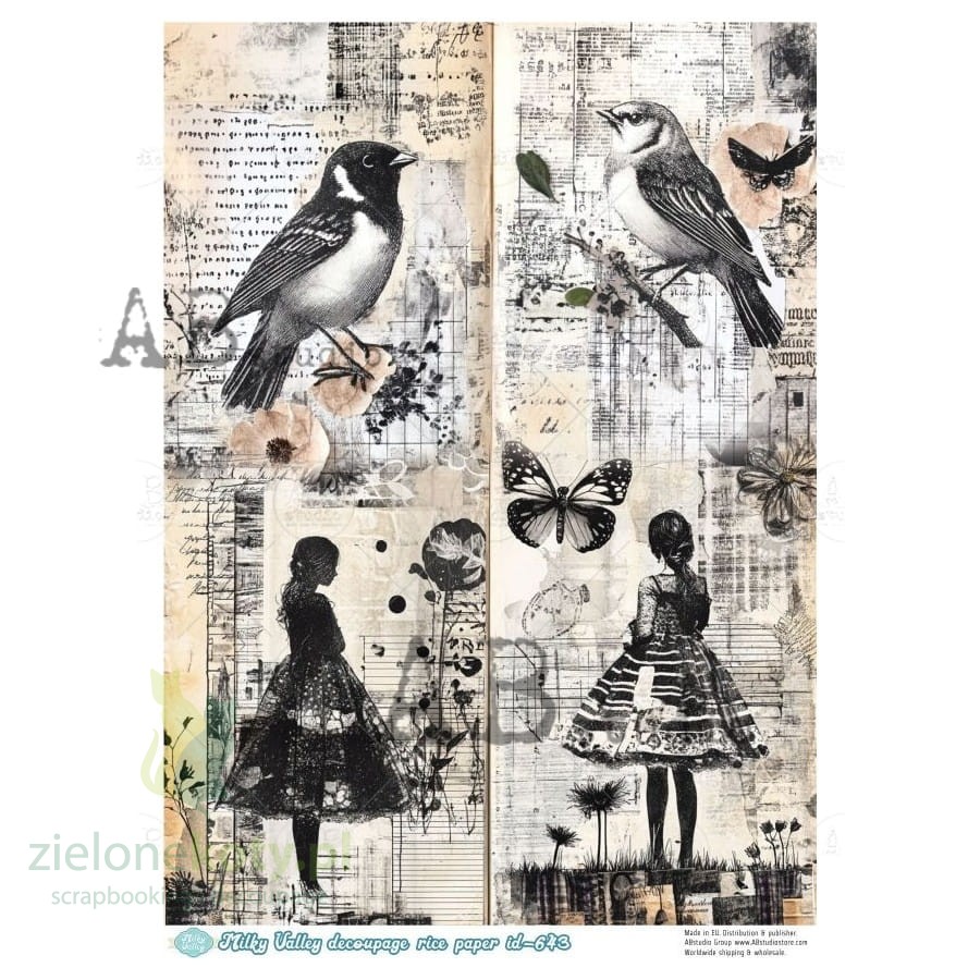 Papier ryżowy decoupage AB Studio Milky Valley A4 ptaki, kobiety