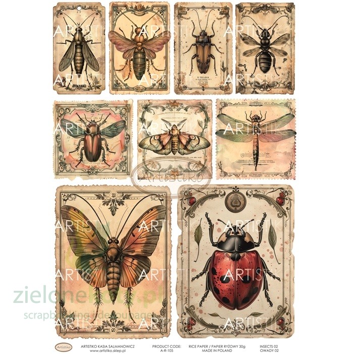 Papier ryżowy A4 do decoupage Artistiko Insects 02 Owady