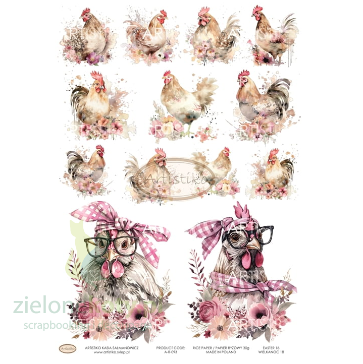 Papier ryżowy A4 do decoupage Artistiko Wielkanoc szykowne kury