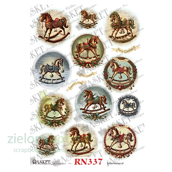 Papier Ryżowy do Decoupage Asket koniki na biegunach koła
