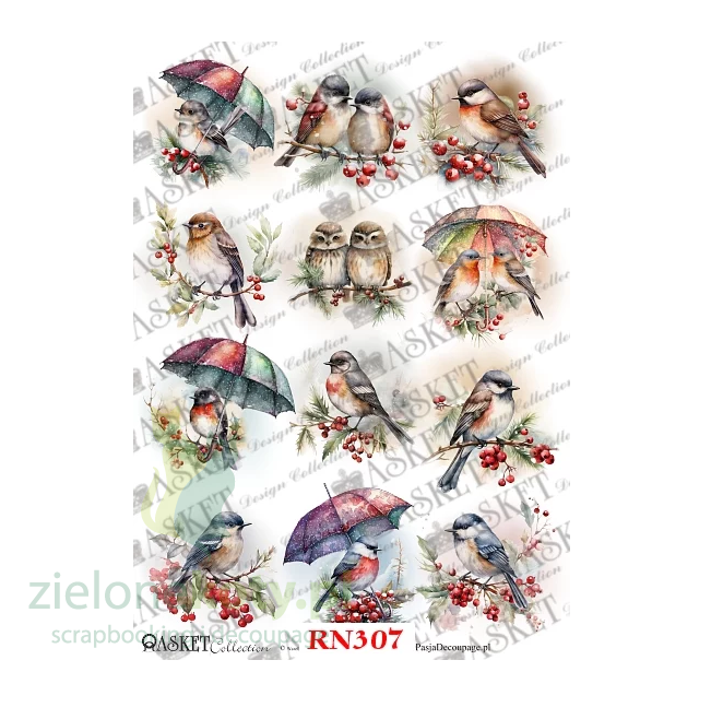 Papier ryżowy decoupage Asket A4 ptaszki z kolorowym parasolem