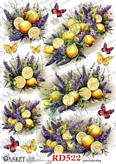 Papier Ryżowy do Decoupage Asket Bukiety cytryny z lawendą