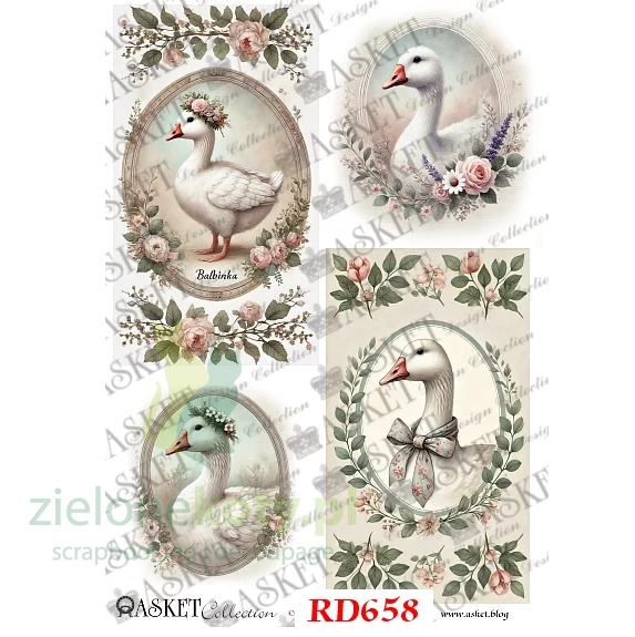 Papier ryżowy decoupage Asket A4 miękki gęsi w wiankach