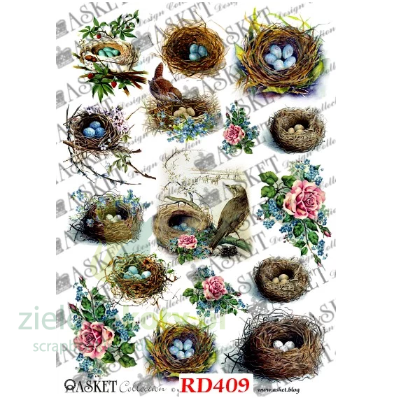 Papier ryżowy decoupage Asket A4 miękki gniazda z jajkami x