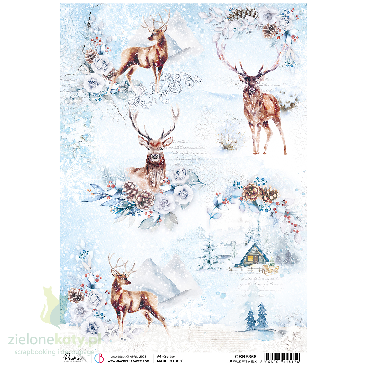 Papier ryżowy decoupage Ciao Bella A Walk With A Elk zima jelenie