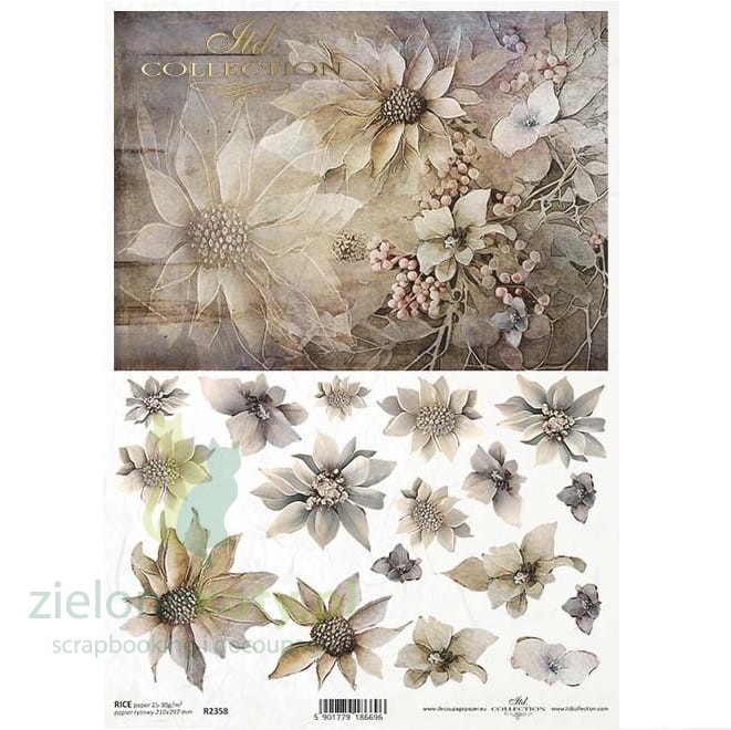 Papier ryżowy decoupage ITD Collection A4 zimowy bukiet plus kwiaty x