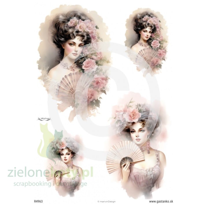 Papier ryżowy decoupage Mariviri Design A4 kobiety z wachlarzami
