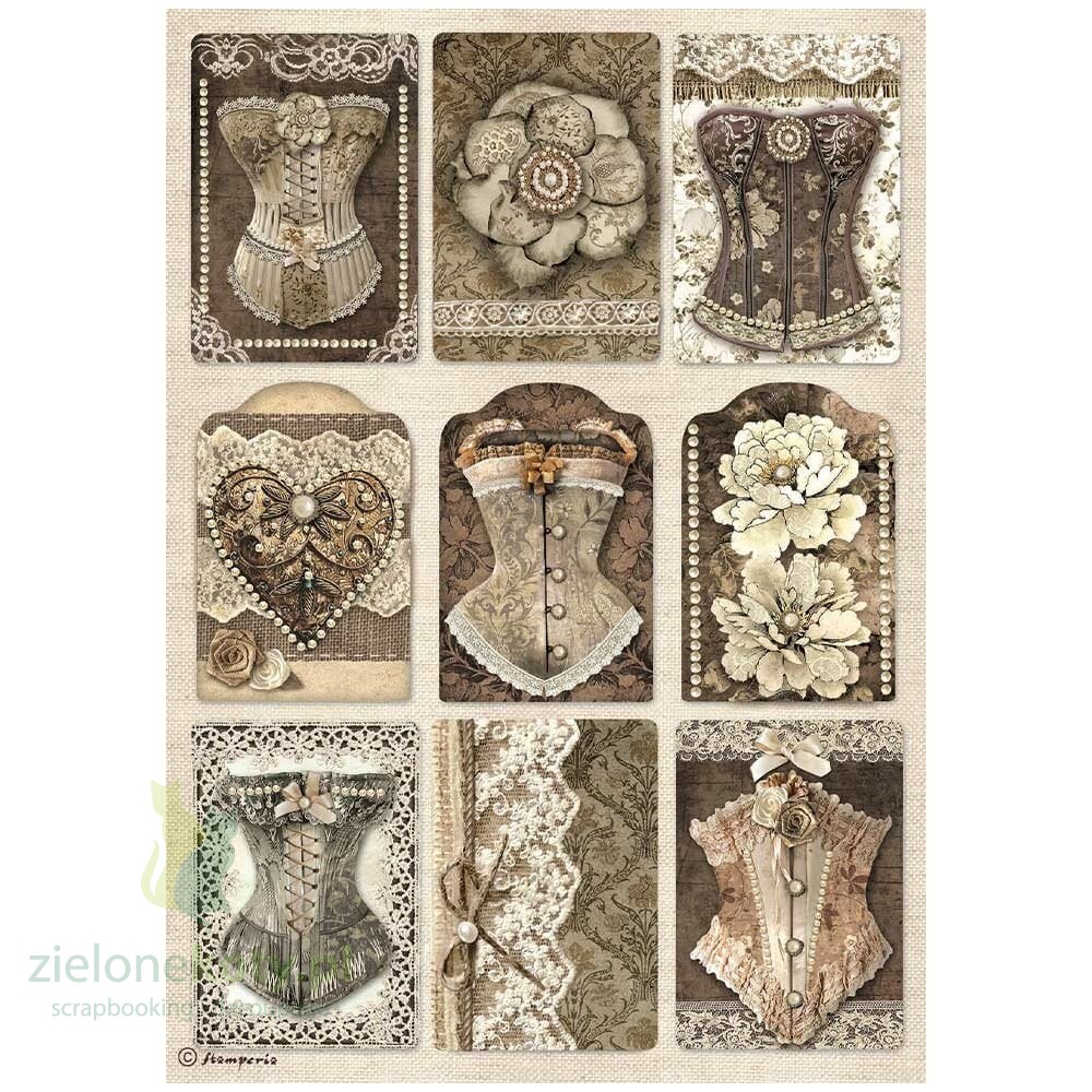 Papier ryżowy decoupage Stamperia A4 Old Lace gorset
