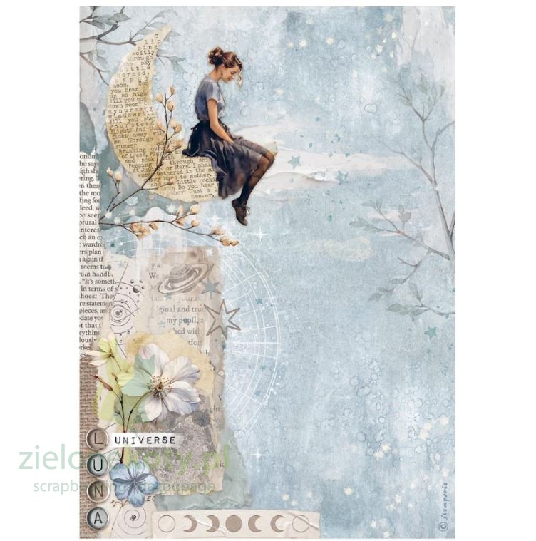 Papier ryżowy A4 do decoupage Stamperia Secret diary kobieta,księżyc