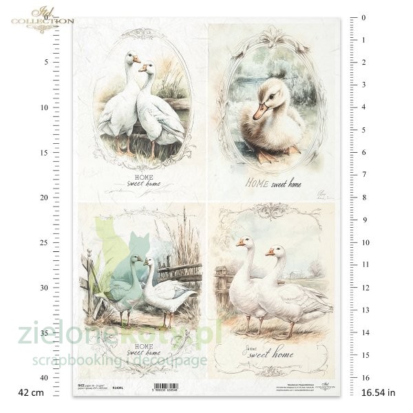 Papier ryżowy A3 do decoupage ITD Collection gęsi