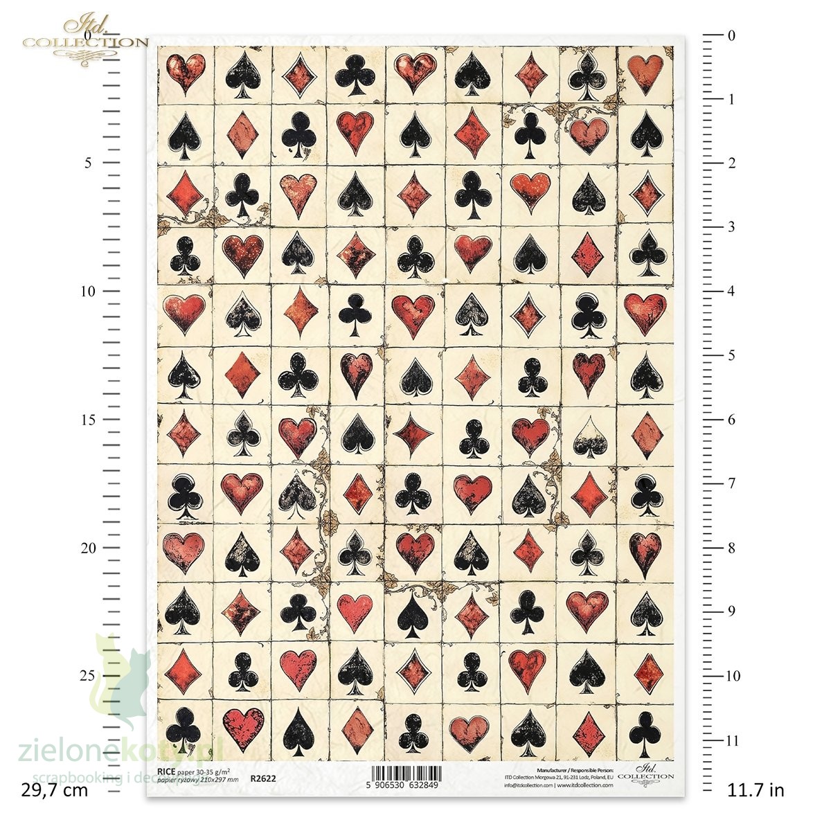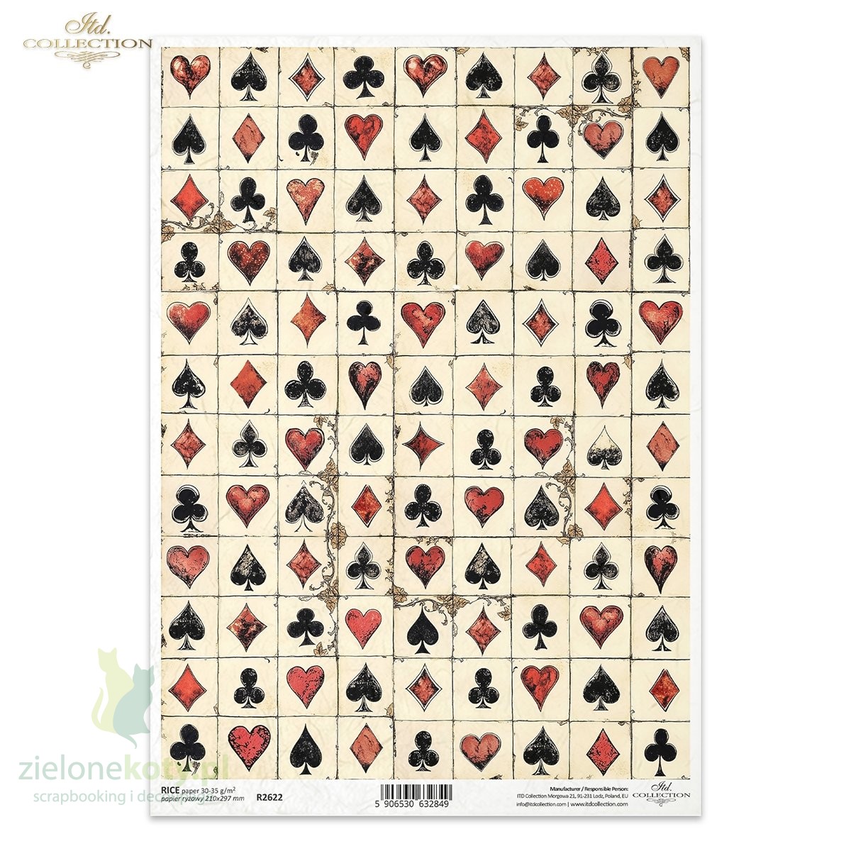Papier ryżowy A4 do decoupage ITD Collection symbole kart, tło