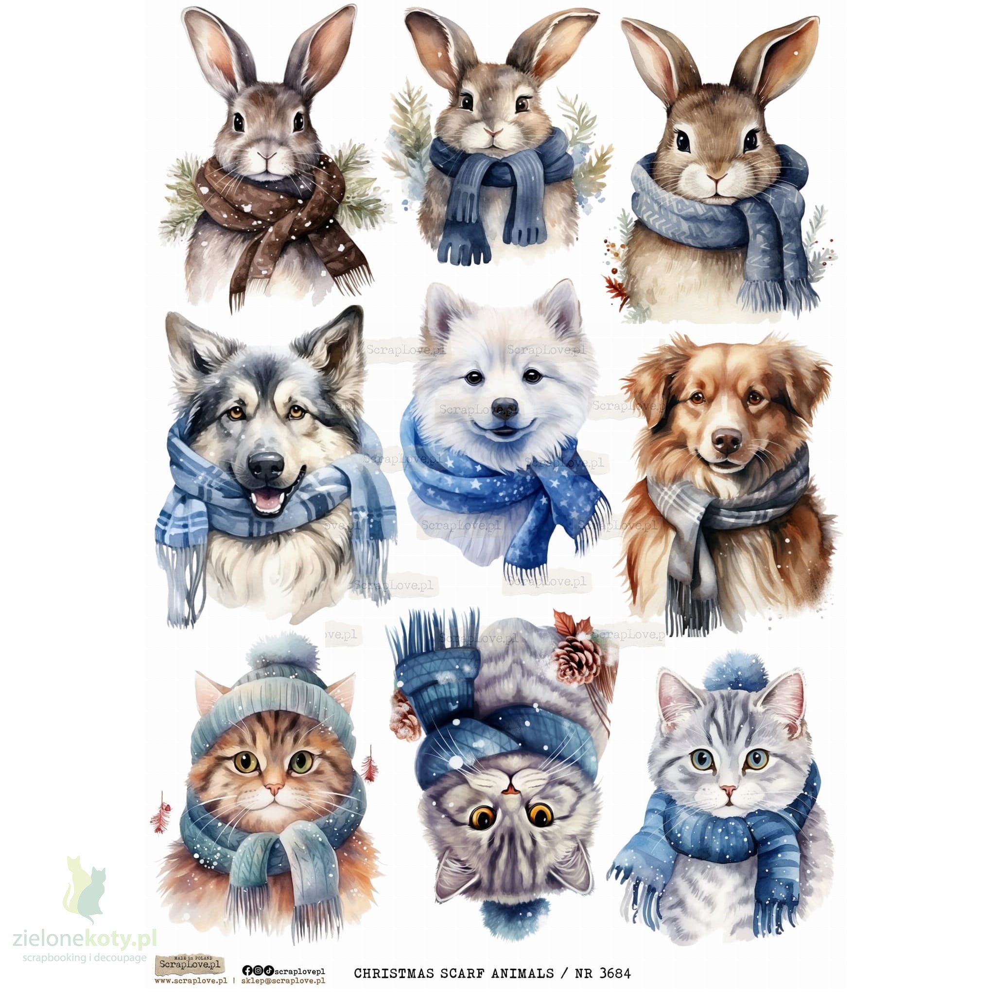 Papier ryżowy ScrapLove Winter Scarf Animals zimowe zwierzęta x