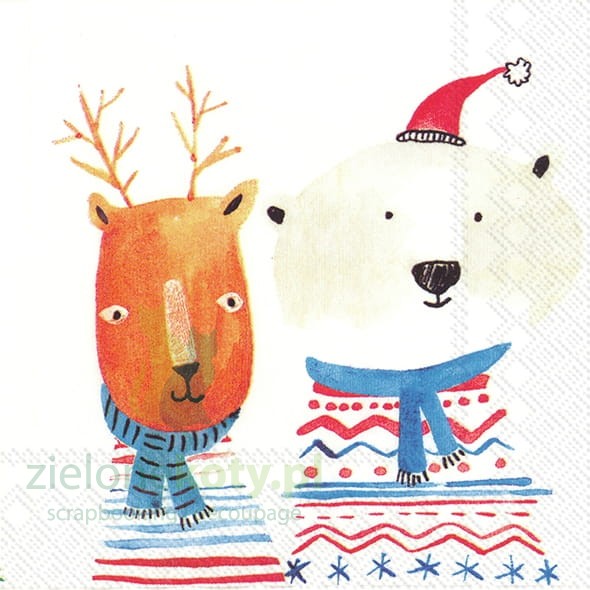 Serwetka 25x25cm zima, renifer i niedźwiedź (C829900)
