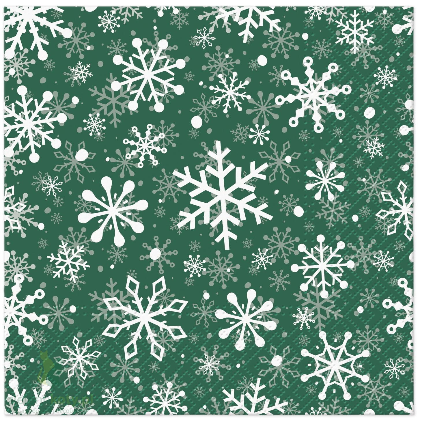 Serwetka 33x33cm śnieżynki tło zielone (sdl230616)