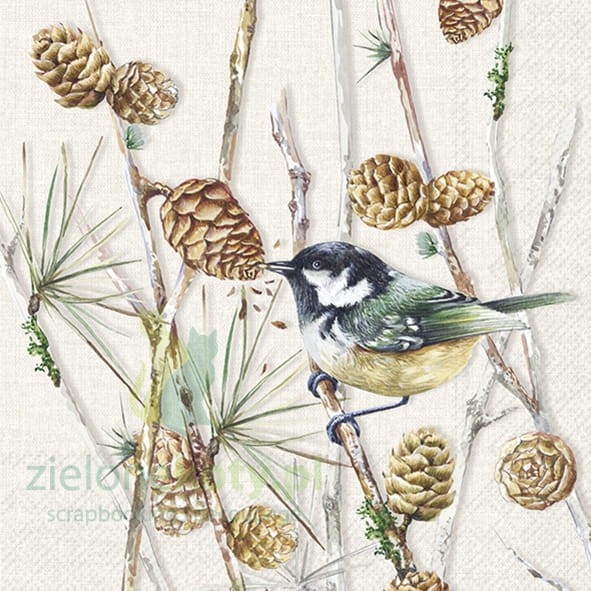 Serwetka 25x25cm ptak szyszki zima (C1020360)