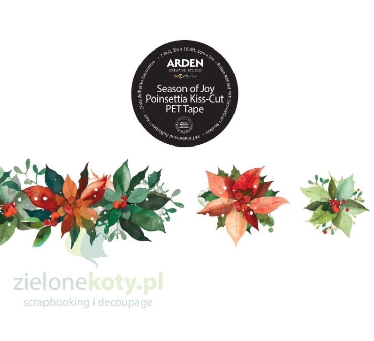 Dodatki foliowe taśma samoprzylepna Arden Creative Studio Kiss-Cut PET Tape Season of Joy poinsecje