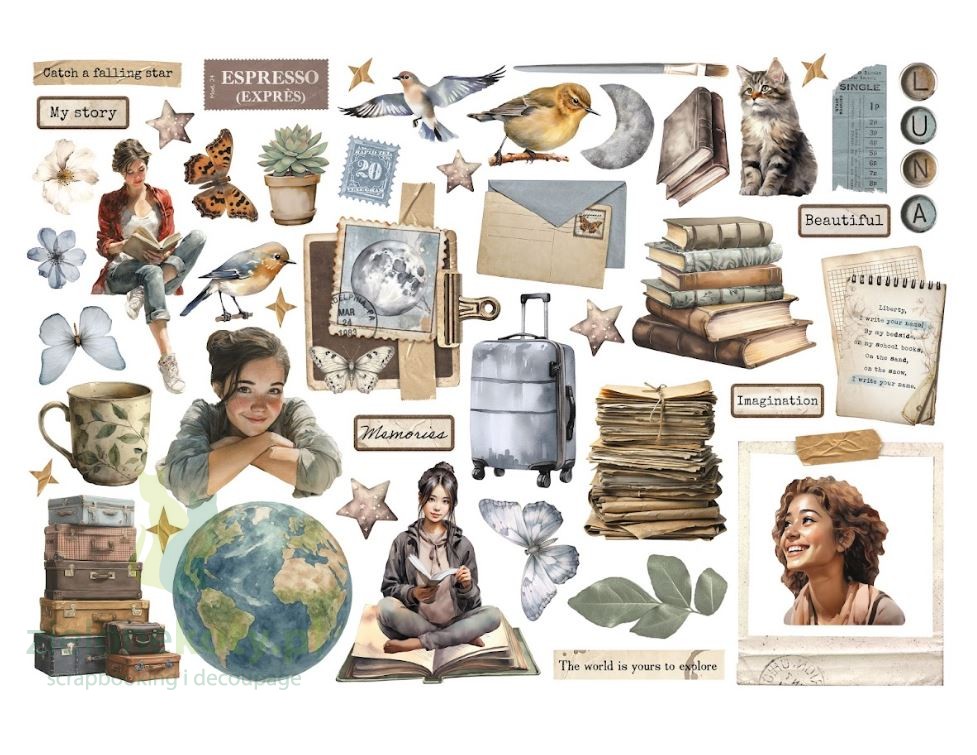Zestaw zawiera gotowe elementy  typu die-cut, przeznaczone do różnorodnych projektów kreatywnych, takich jak scrapbooking, kartki okolicznościowe, albumy, journale czy dekoracje.