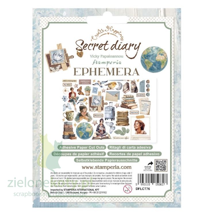 Dodatki papierowe die-cuts Stamperia Ephemera Secret diary samoprzylepne