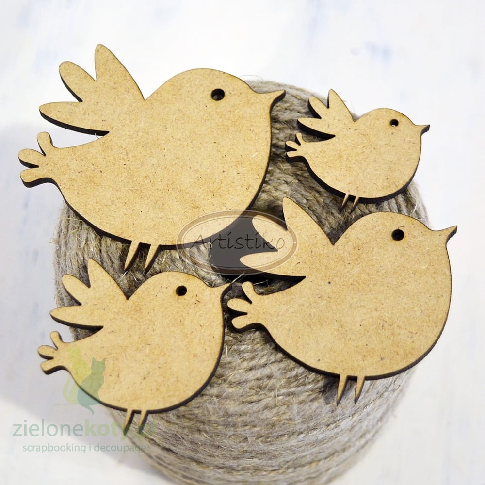 W opakowaniu 4 ptaszki 3,4x3,8cm, 4,4x4,9cm, 5,4x5,9cm i 6,4x7cm.