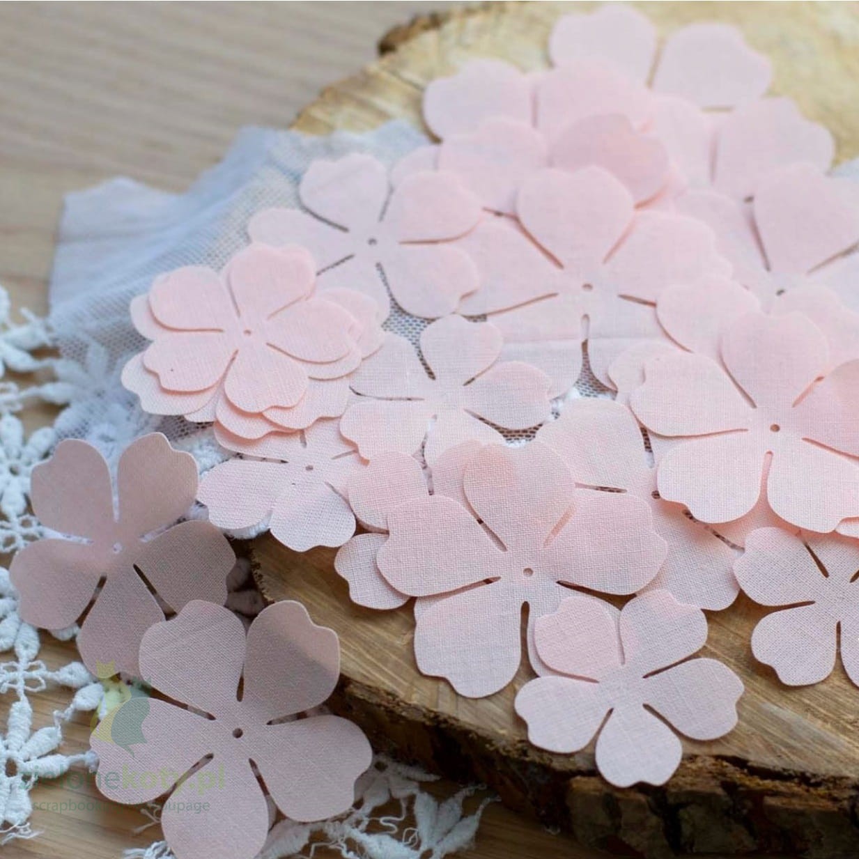 Płatki do ręcznego tworzenia kwiatów przy pomocy nagrzewnicy. Płatki wykonane są z usztywnionej tkaniny bawełnianej. każdy posiada dziurkę, która ułatwia wklejanie pręcików.
