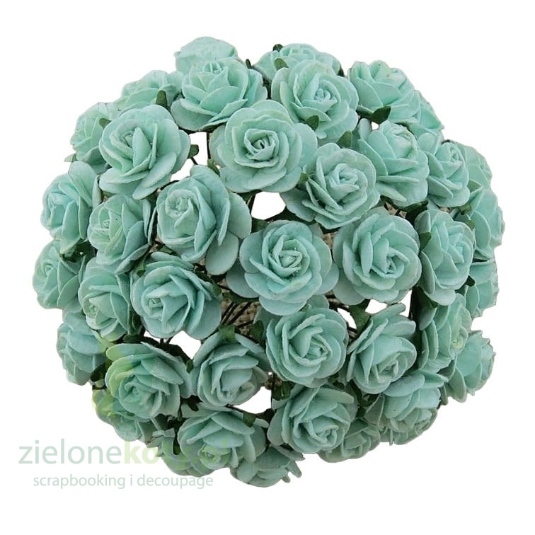 Kwiatki W.O.C. róże open rose zielone miętowe 10mm zestaw 50szt