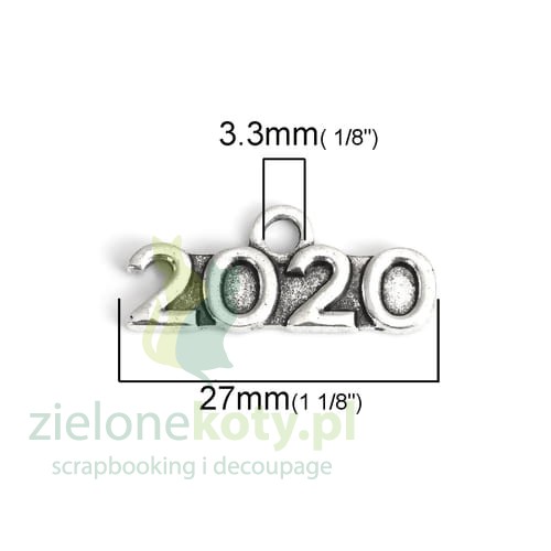 Metalowa zawieszka "2020" 5szt. kolor srebrny