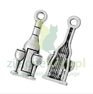 Metalowa zawieszka butelka z kieliszkami 2cm / 3szt