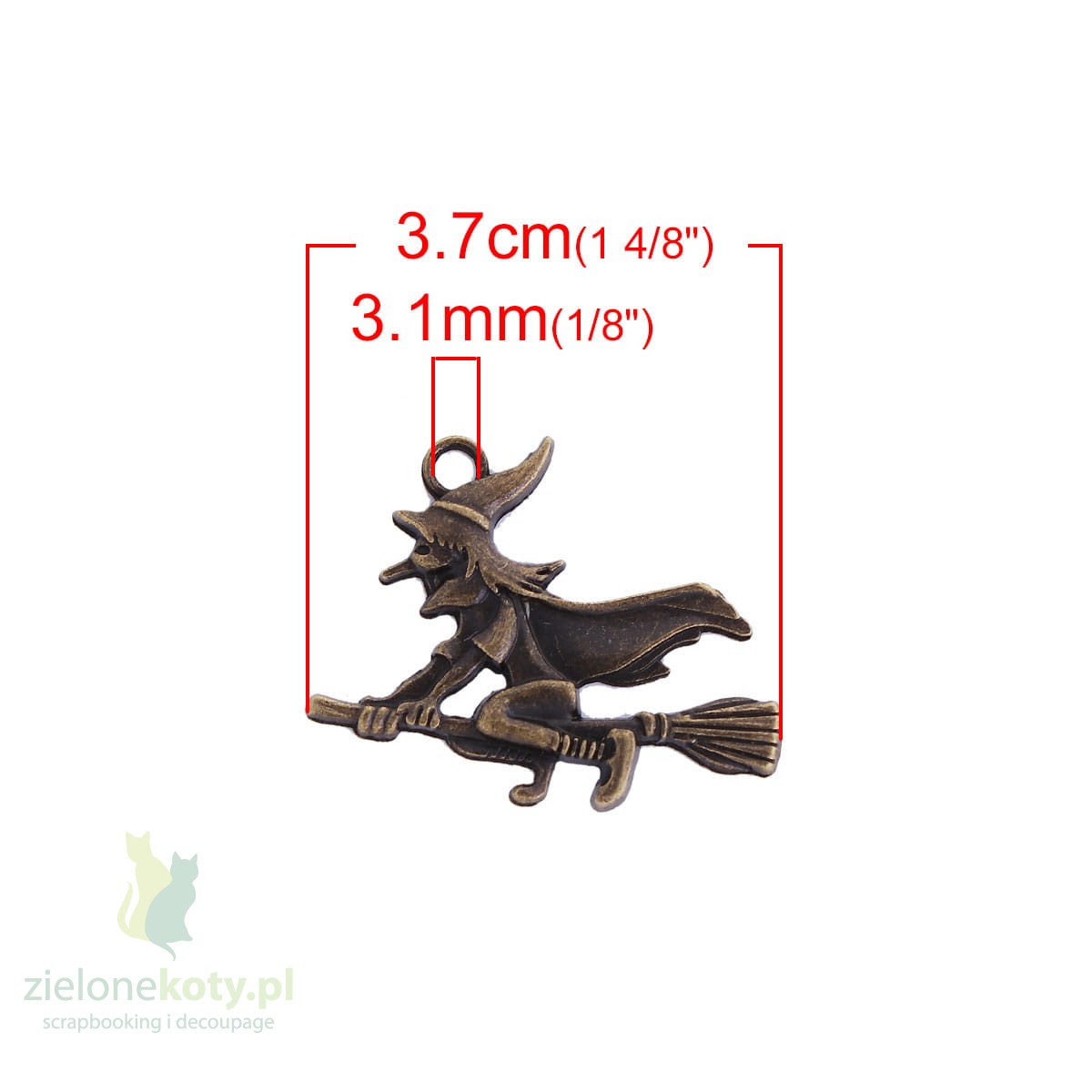 Metalowa zawieszka czarownica 2,9cm brąz