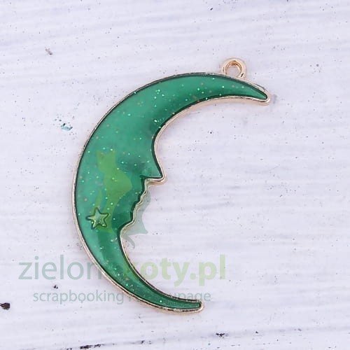 Metalowa zawieszka emaliowana księżyc 30mm zielony