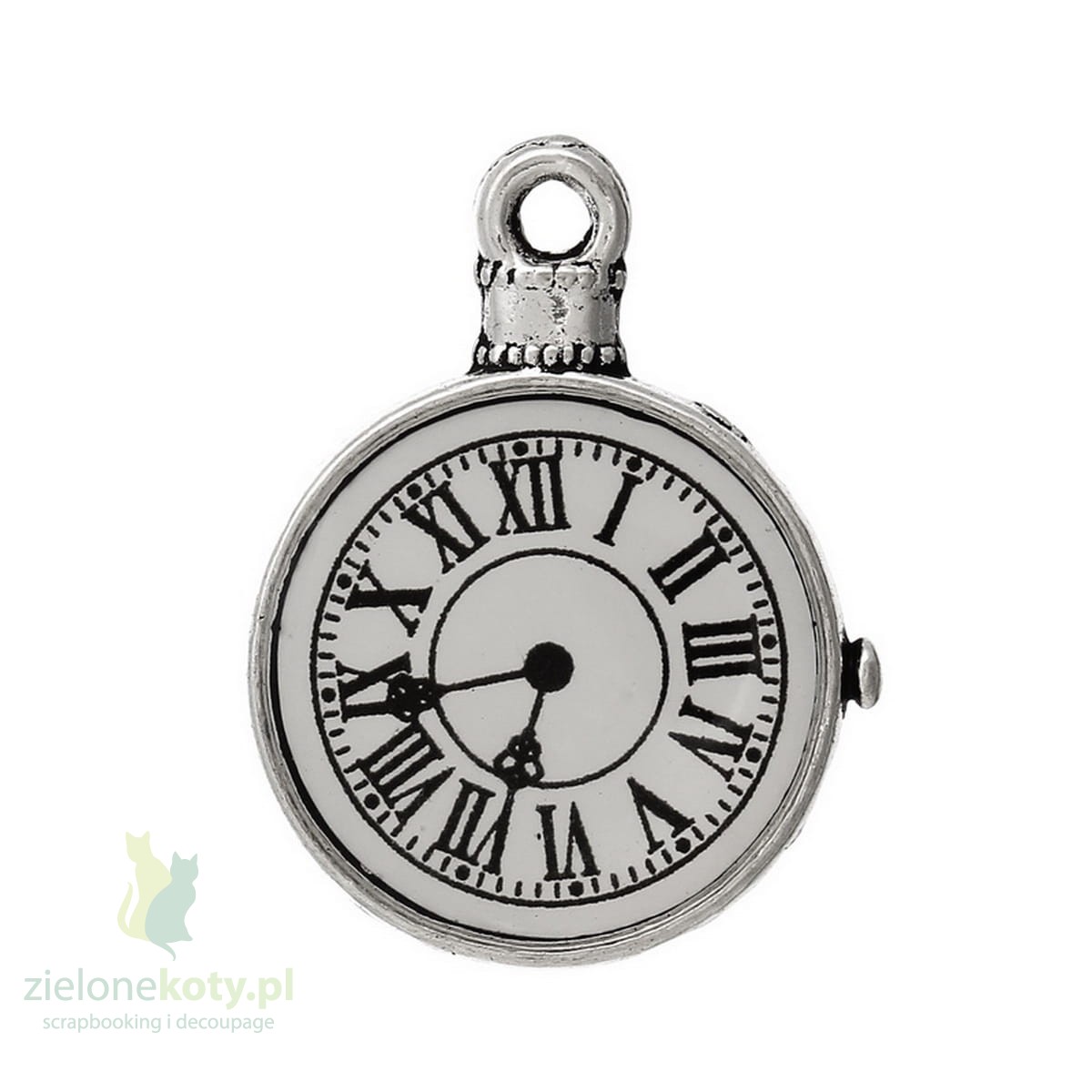 Metalowa zawieszka zegar 2,5cm kol. srebrny