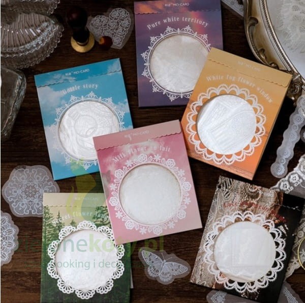 Naklejki białe, wyglądające jak koronka.