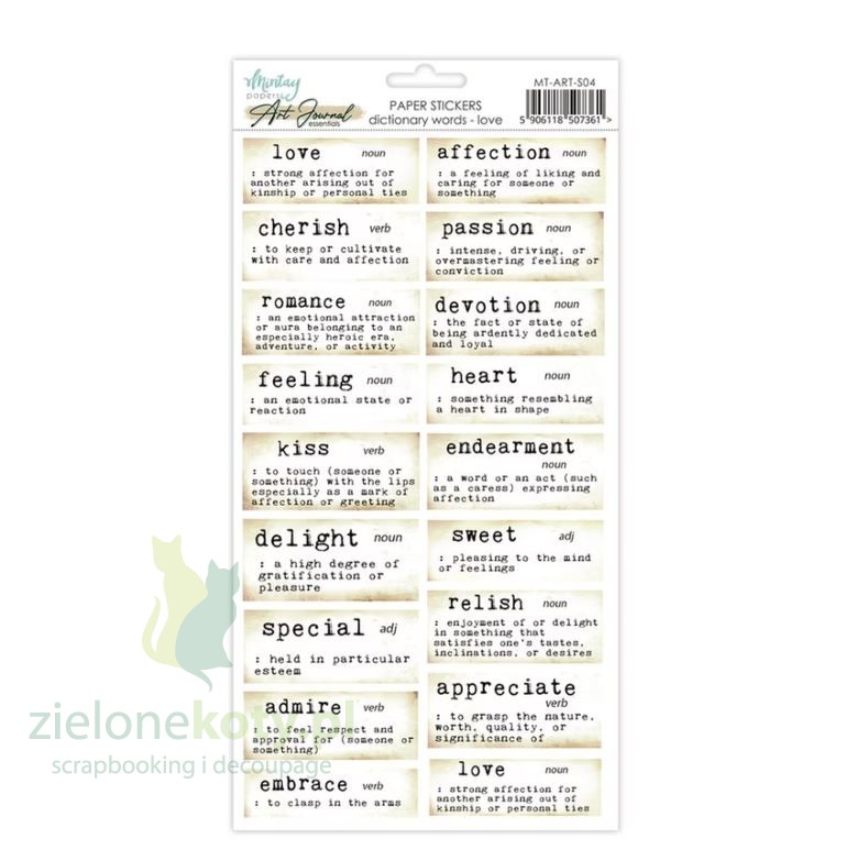 Zestaw papierowych naklejek do Art Journala Mintay Dictionary Words - love