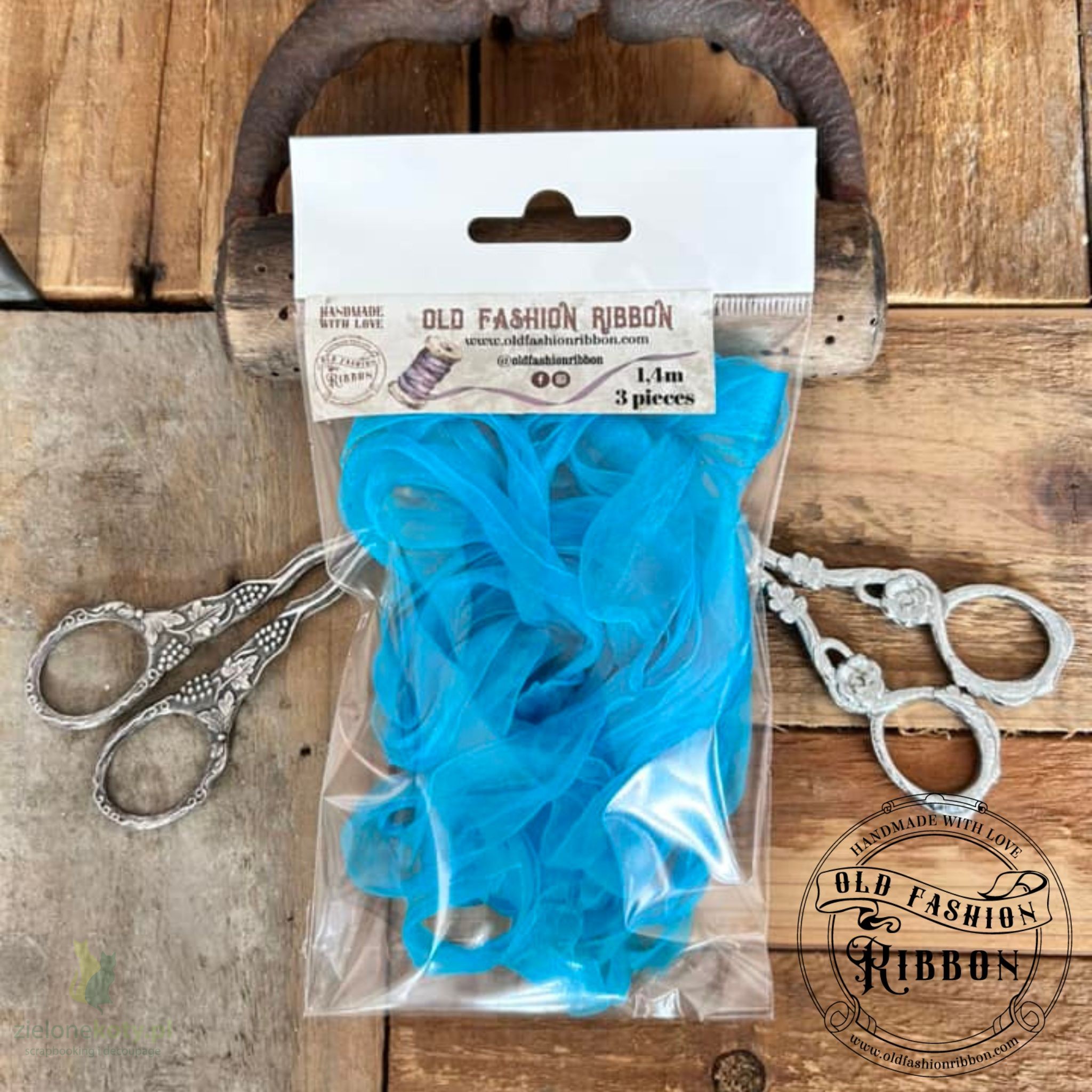Tasiemka Vintage Old Fashion mgiełki 3szt turkusowe niebieska