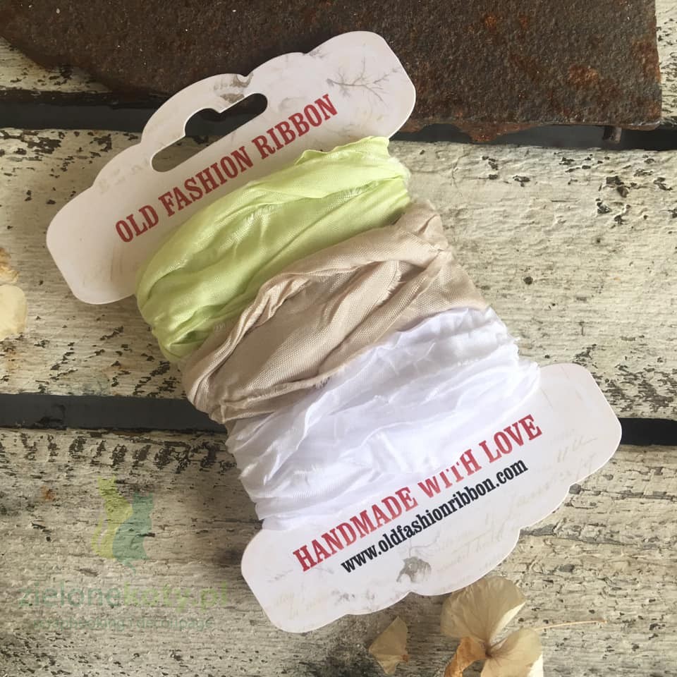 Tasiemka Vintage Old Fashion Ribbon 3szt biała zielona beżowa