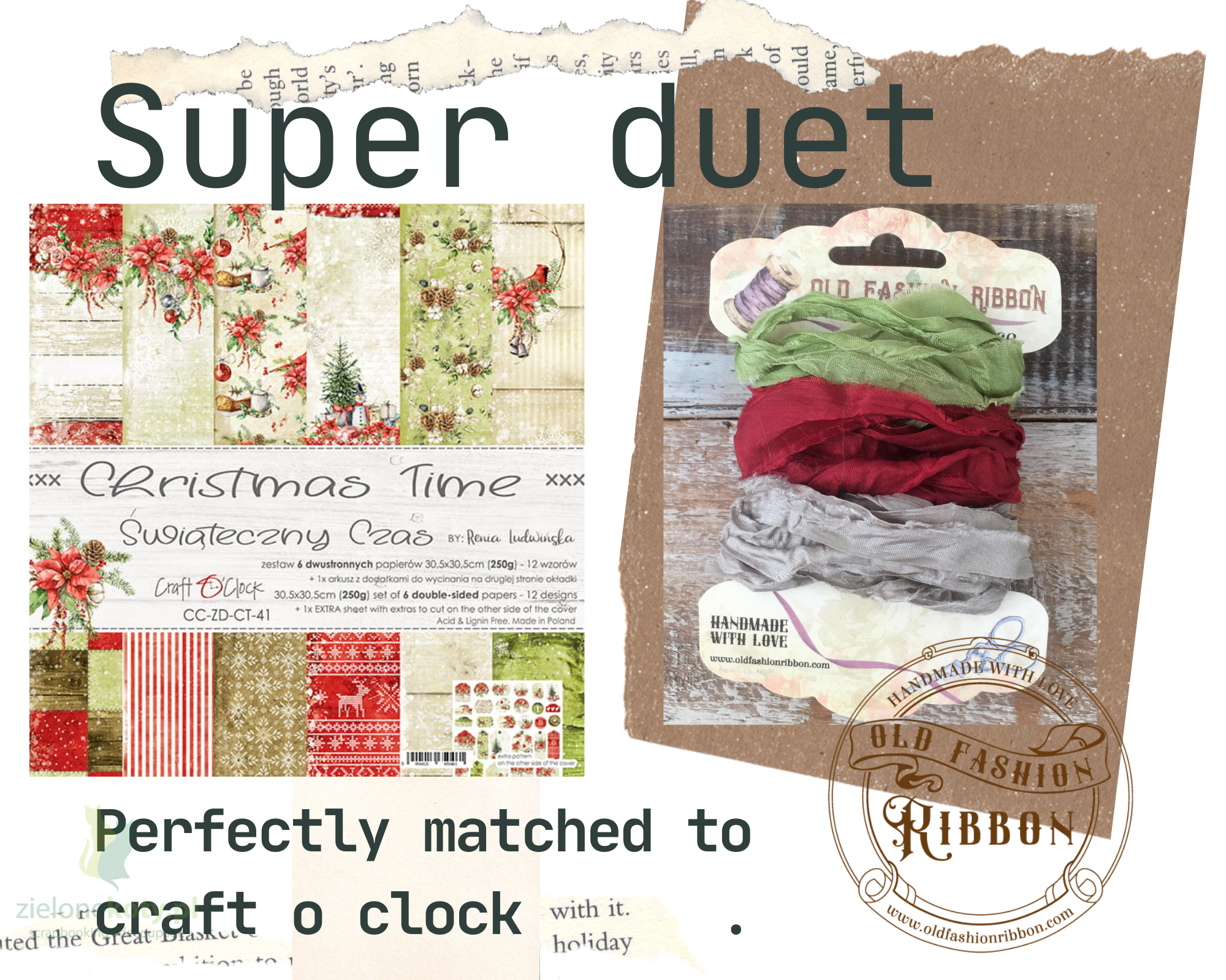 Tasiemka Vintage Old Fashion Ribbon Craft O' Clock 3szt Christmas Time szara, czerwona, zielona