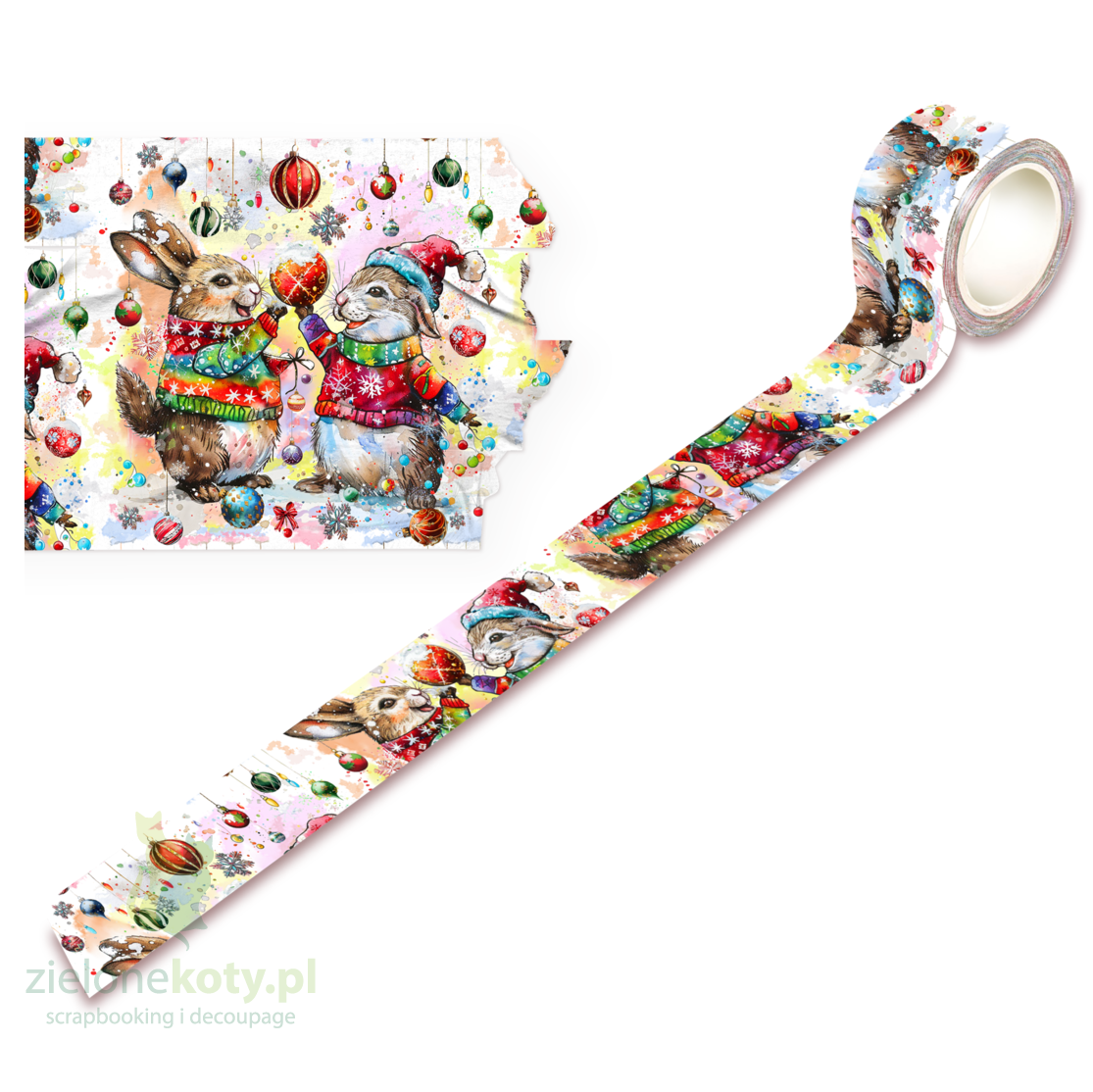 Taśma washi AAll & Create #111 25mm 10m Hoppy Holidays świąteczne zajączki