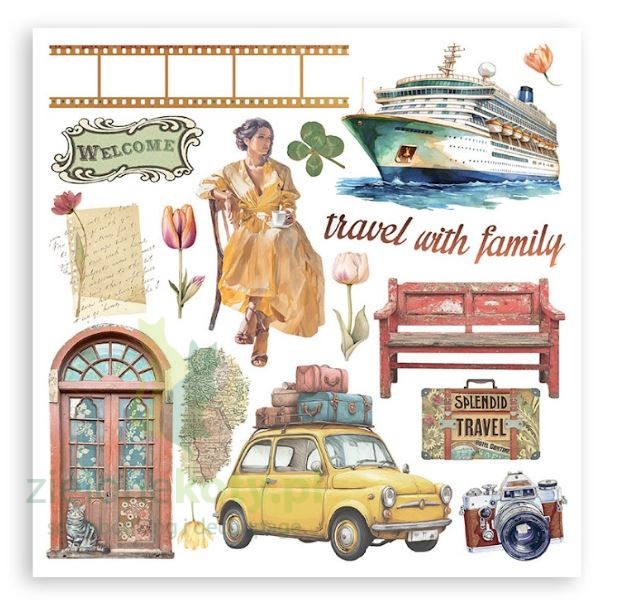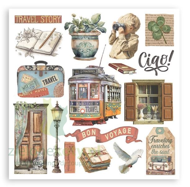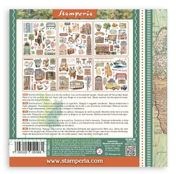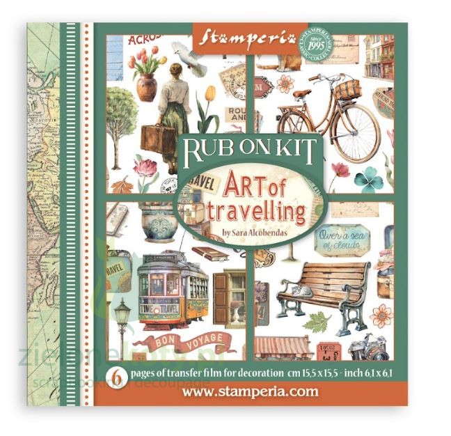 Transfer Rub-On Kit Stamperia 15,5x15,5 cm Art of travelling 6 arkuszy