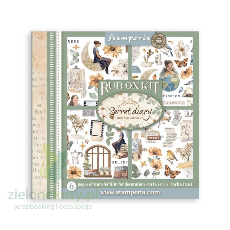 Transfer Rub-On Kit Stamperia 15,5x15,5 cm Secret diary 6 arkuszy
