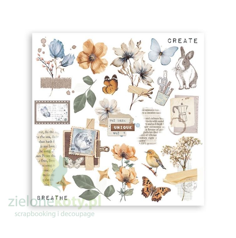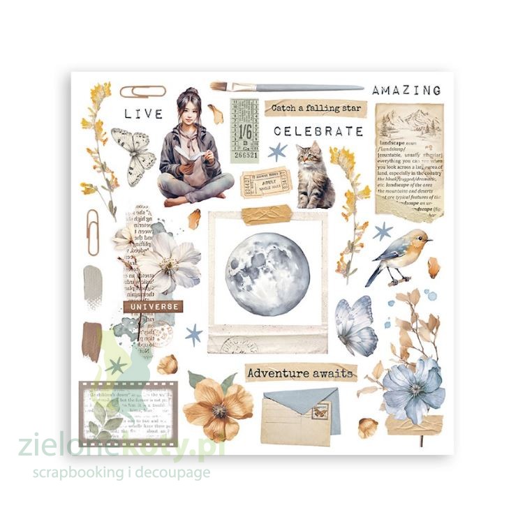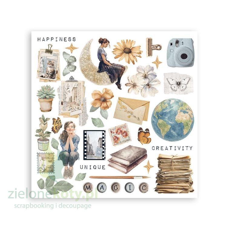 „Secret Diary” to subtelna, stonowana kolekcja papierów i dodatków do scrapbookingu, decoupage i mixed media marki Stamperia, która doskonale sprawdzi się w pracach pełnych sentymentu, melancholii, fantazji. Kolekcja utrzymana jest w jasnych pastelowych barwach beżu, błękitu oraz pełna motywów doskonałych do tworzenia junk, art journala oraz innych projektów upamiętniających piękno codzienności.