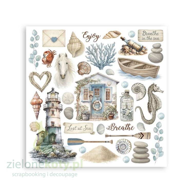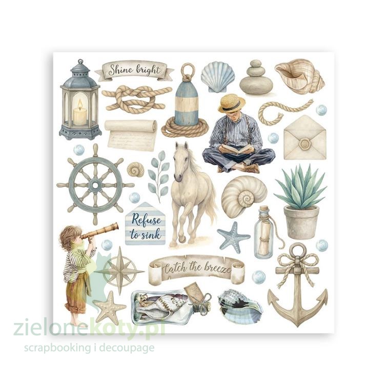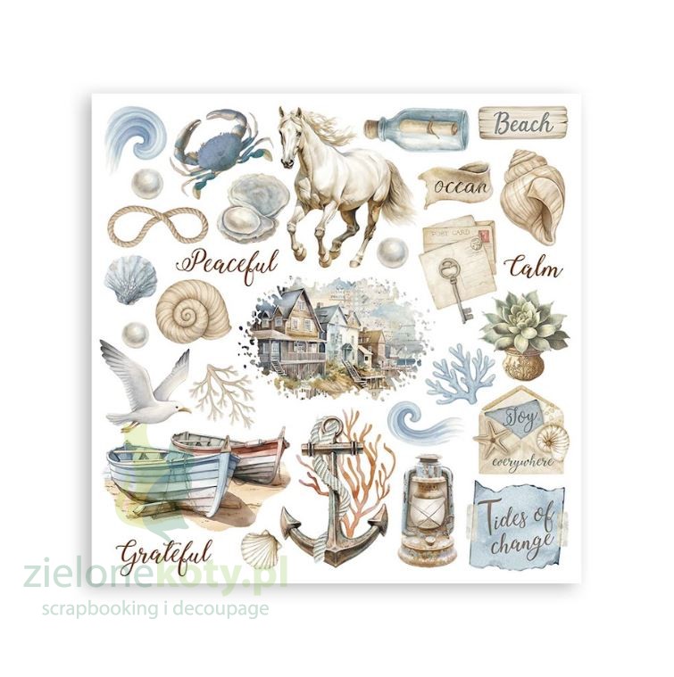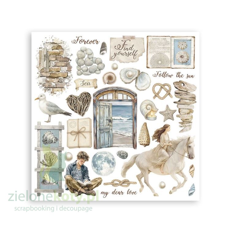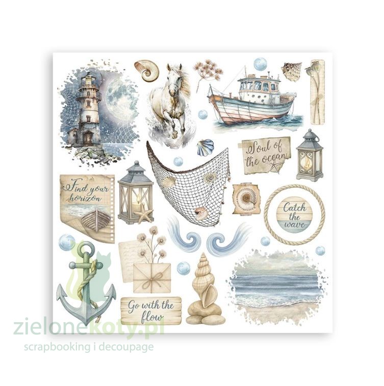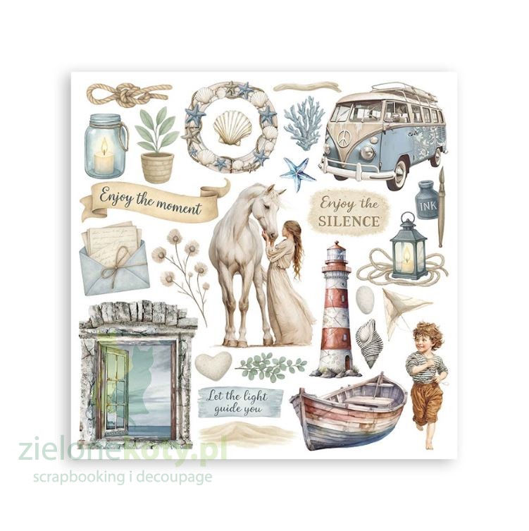 „Silent Sea” od marki Stamperia to nastrojowa, morska kolekcja papierów i dodatków do scrapbookingu i decoupage, utrzymana w odcieniach błękitu, szarości i piaskowego beżu. Pełna muszli, żagli i akwarelowych tekstur, zachwyca spokojem, elegancją i artystycznym stylem vintage