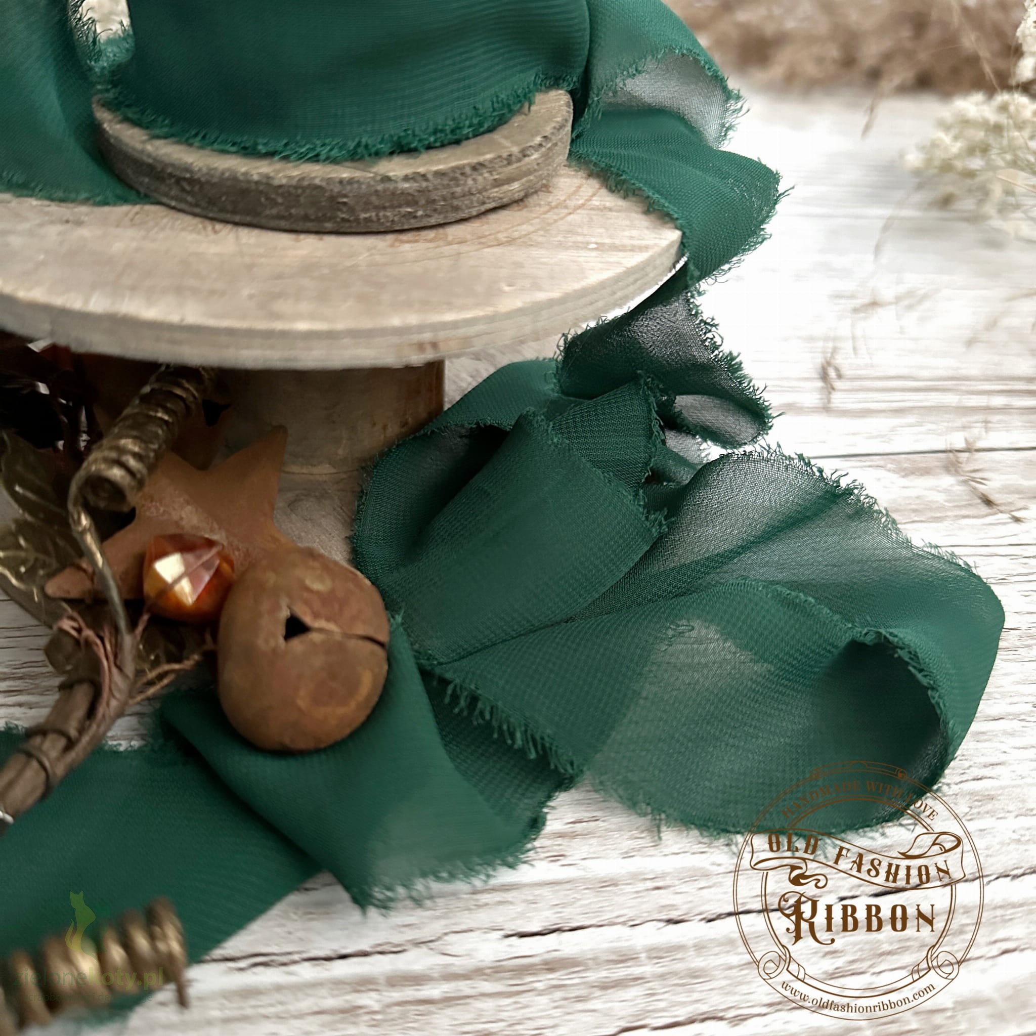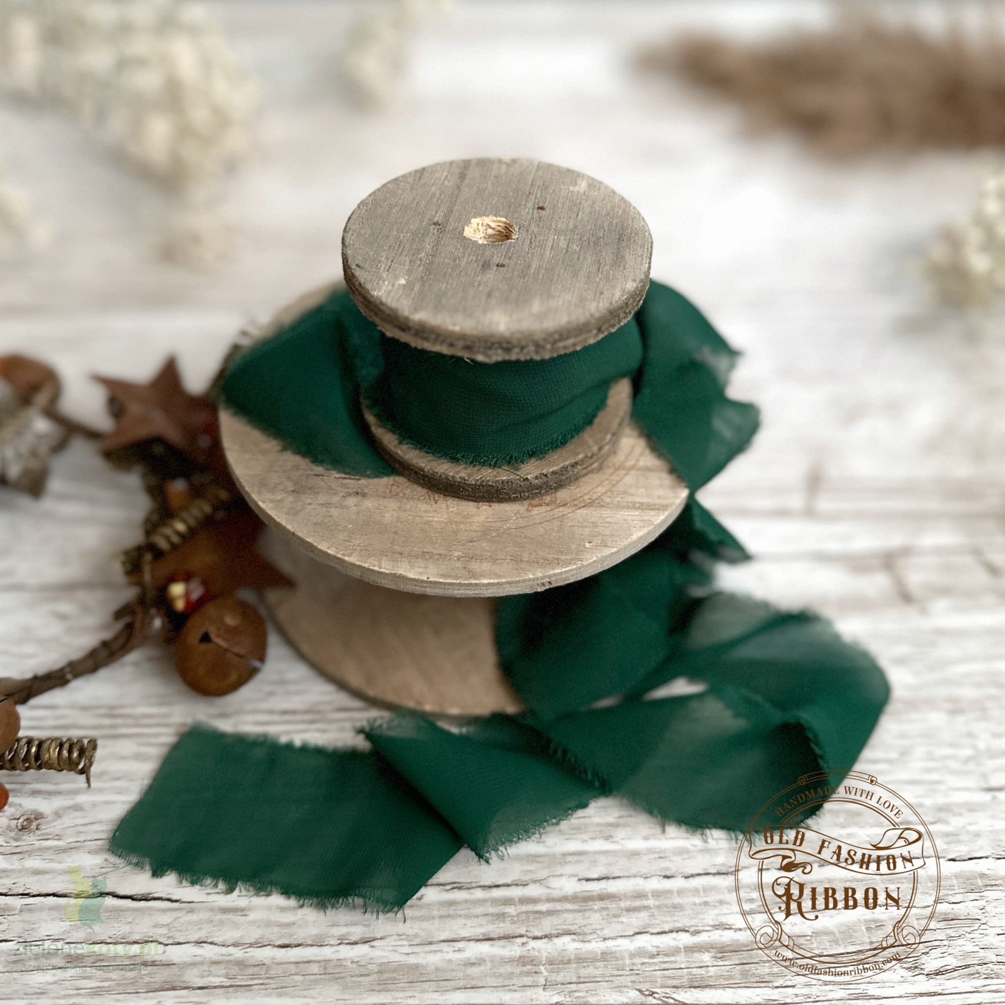 Wstążka szyfonowa Vintage Old Fashion Ribbon 1,4m ciemna zielona