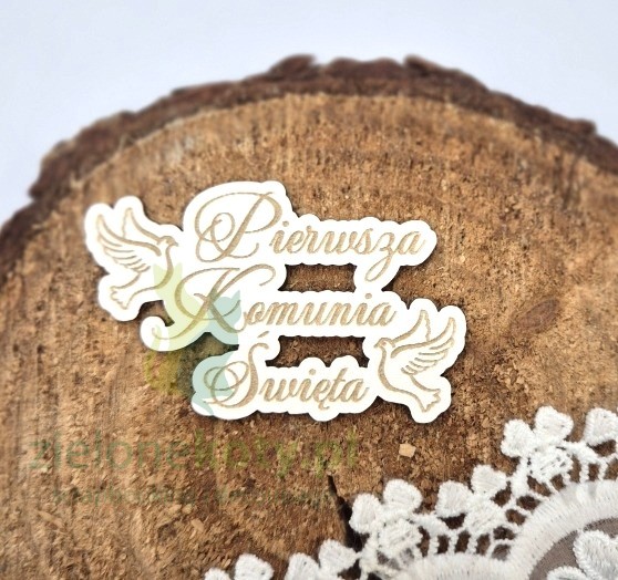 Wycinanka Agateria napis Pierwsza Komunia Święta gołabki